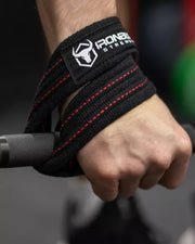 They feature wrist loops and an opposite end that wraps around weights or barbells. Some are made in a figure 8 style, also called figure 8 lifting straps.