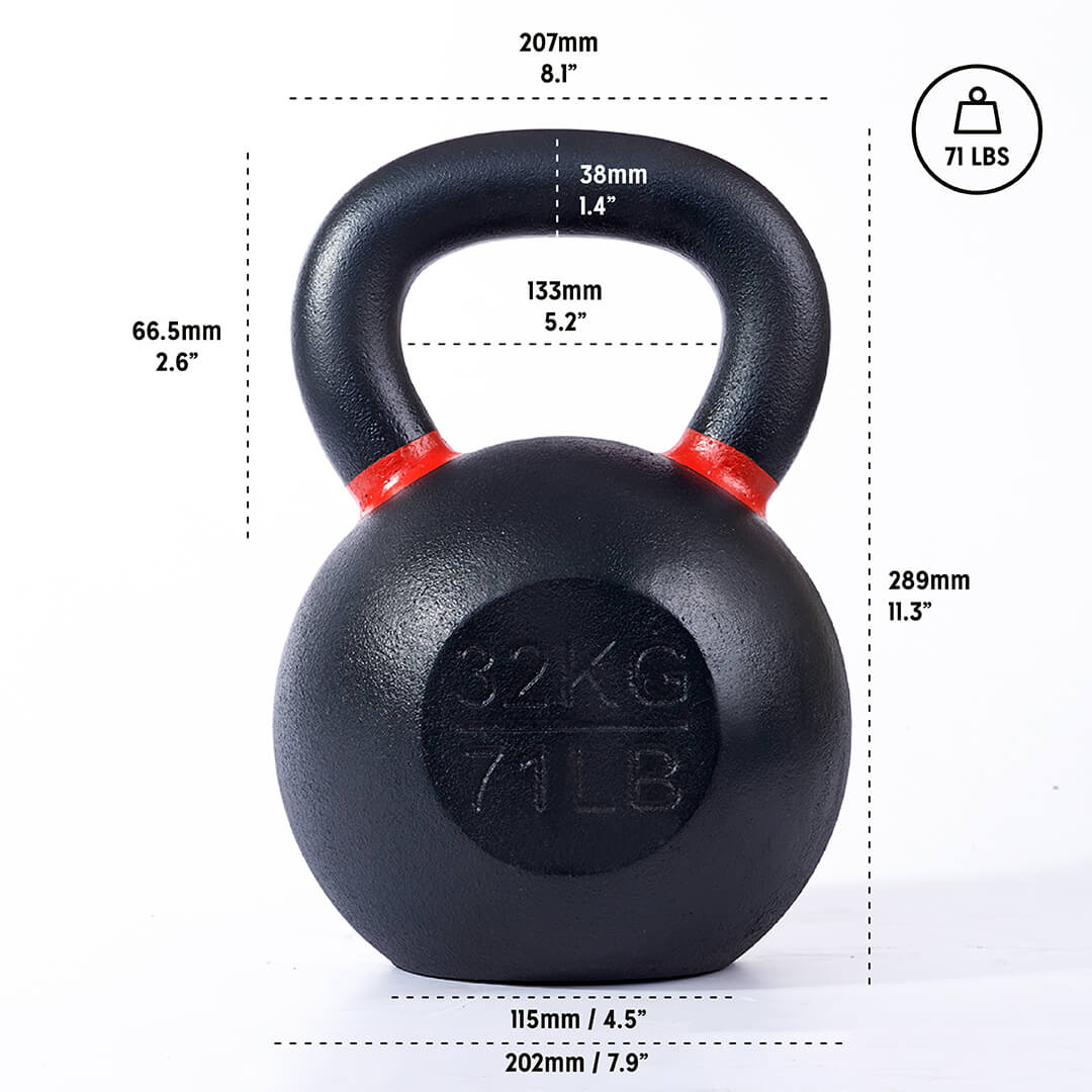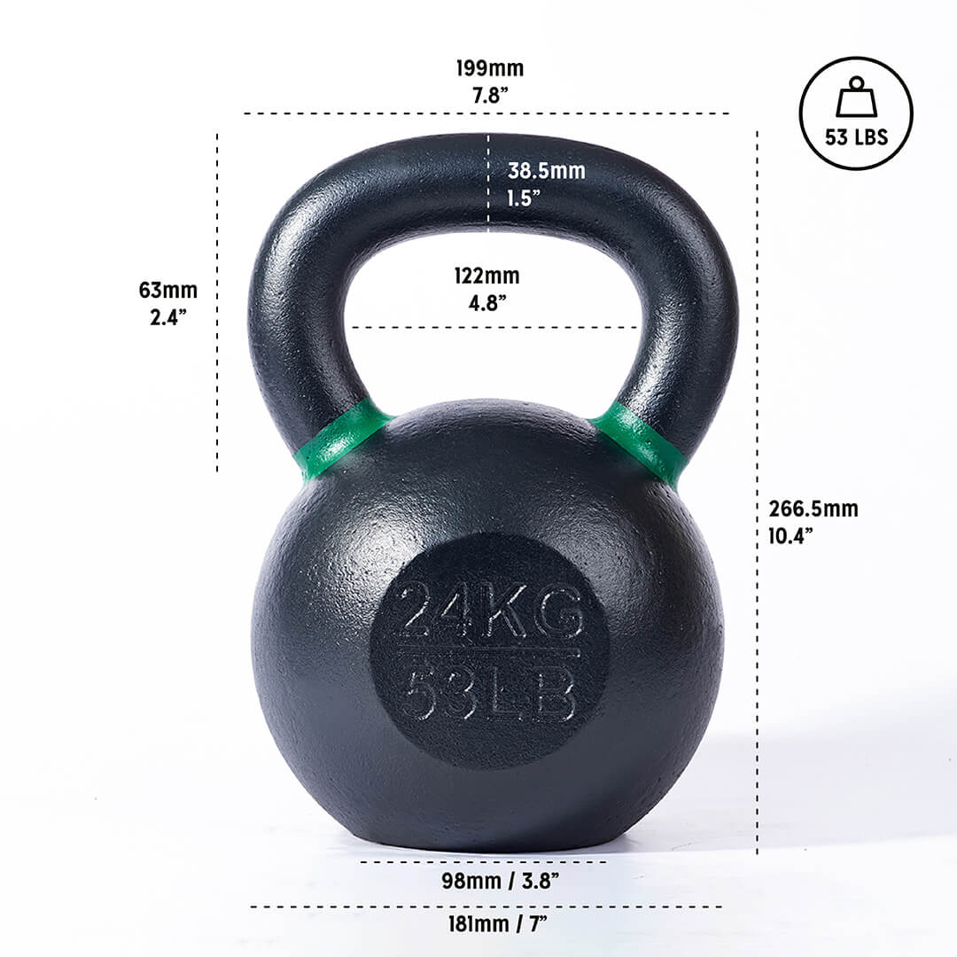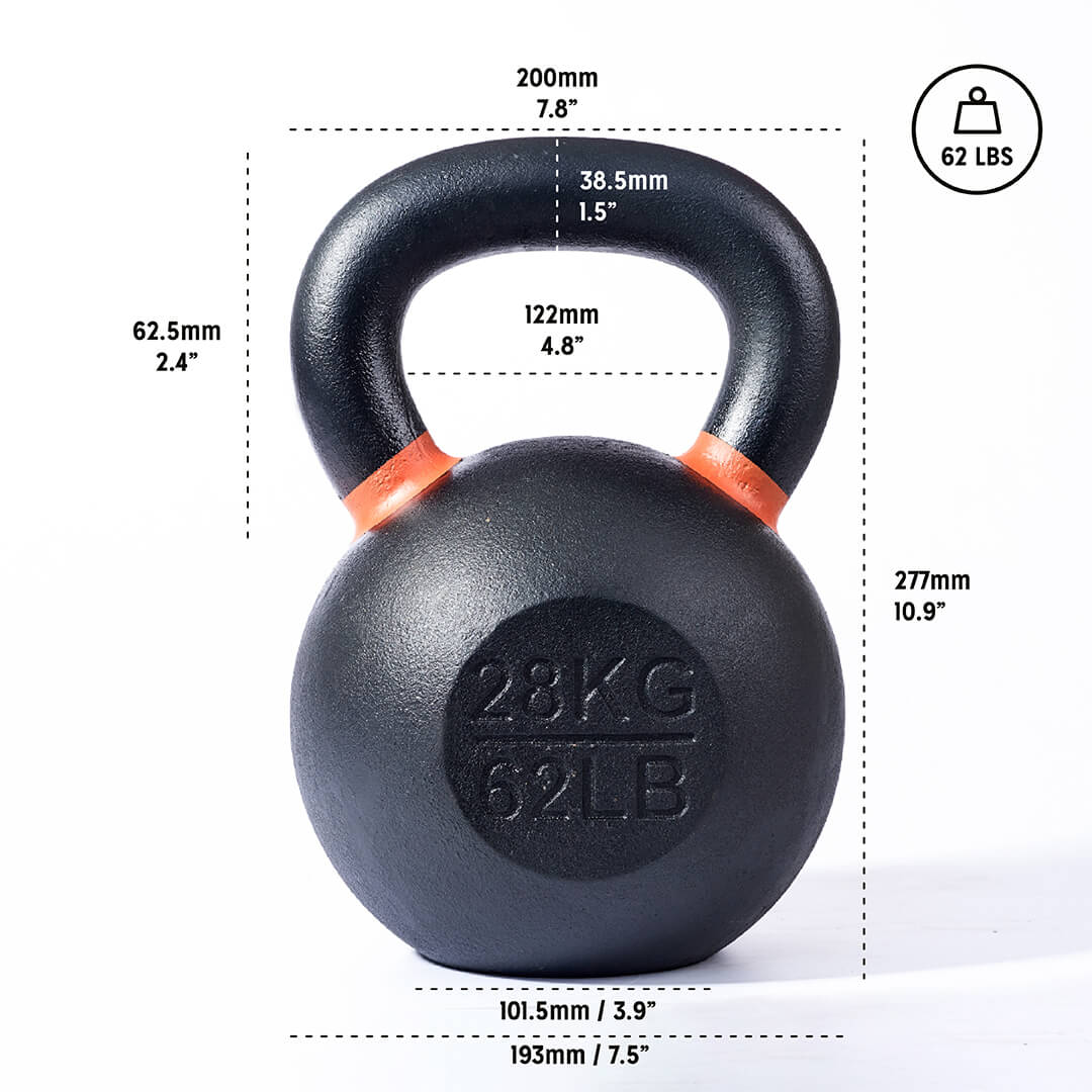 These kettlebells are made in a sand mould using a gravity cast method, which is the most precise method to make kettlebells. The kettlebell is cast in one piece, ensuring better structural integrity than bells with handle moulded on separately.