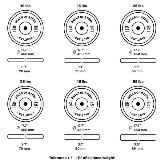 便宜的保險桿可能比聲稱的重量低 10%,導致您在桿上放了錯誤的重量。我們的保險桿板的精確度為聲稱重量的 +/- 1%。再也不用事後猜測酒吧裡有什麼了。