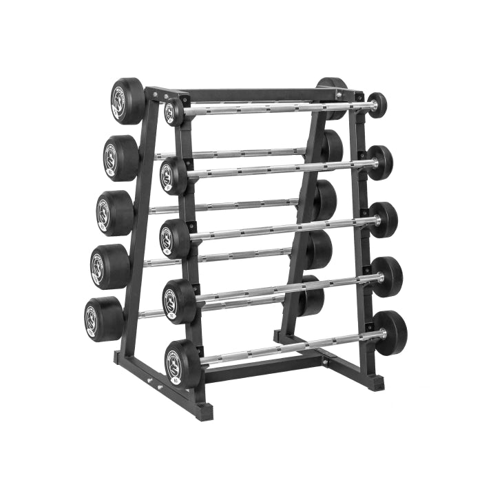 特點• 預設槓鈴 • 標準直徑 • 20-110 磅範圍 • 輕微滾花 • 直型設計