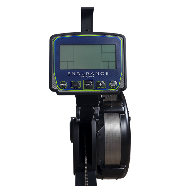 - LCD 顯示器具有快速程式按鈕、心率、速度、RPM、時間、功率和卡路里