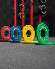 這些板採用顏色編碼設計,易於識別重量,適用於標準 2 英寸奧林匹克槓鈴。