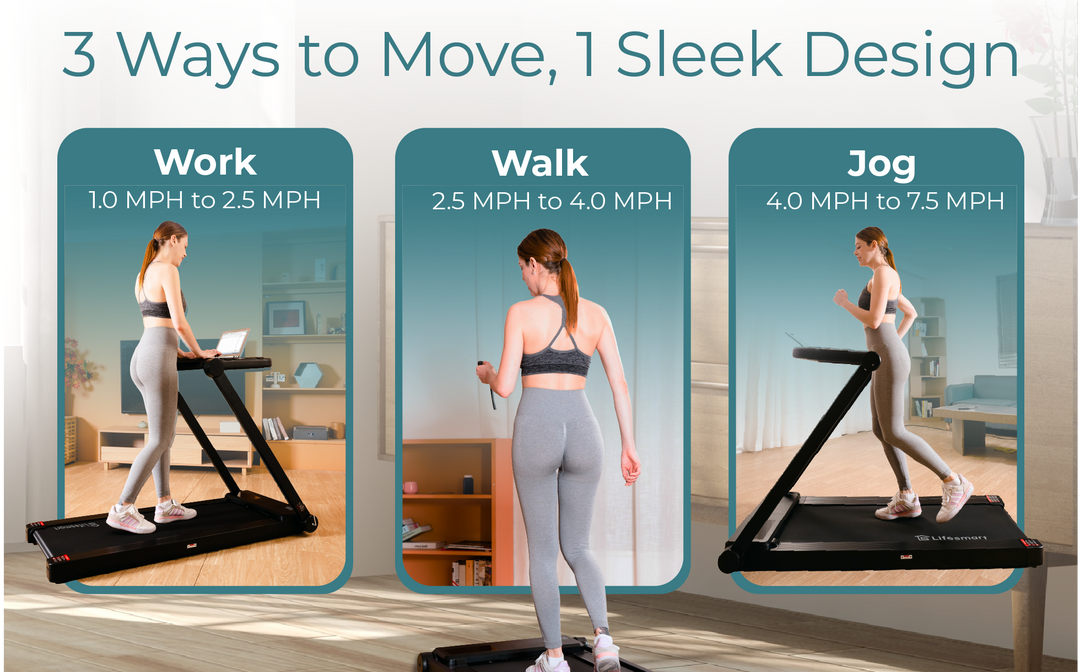 Experience the best of all worlds! Our 3-in-1 design allows you to walk, run, or work—seamlessly switching between a walking station, treadmill, and desk setup. Stay productive while you stay active, all with one stylish machine.